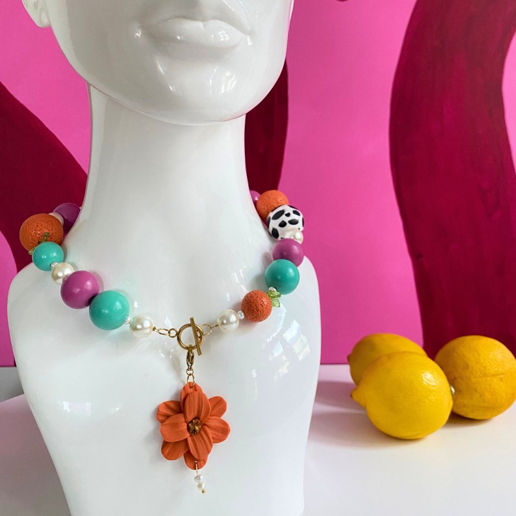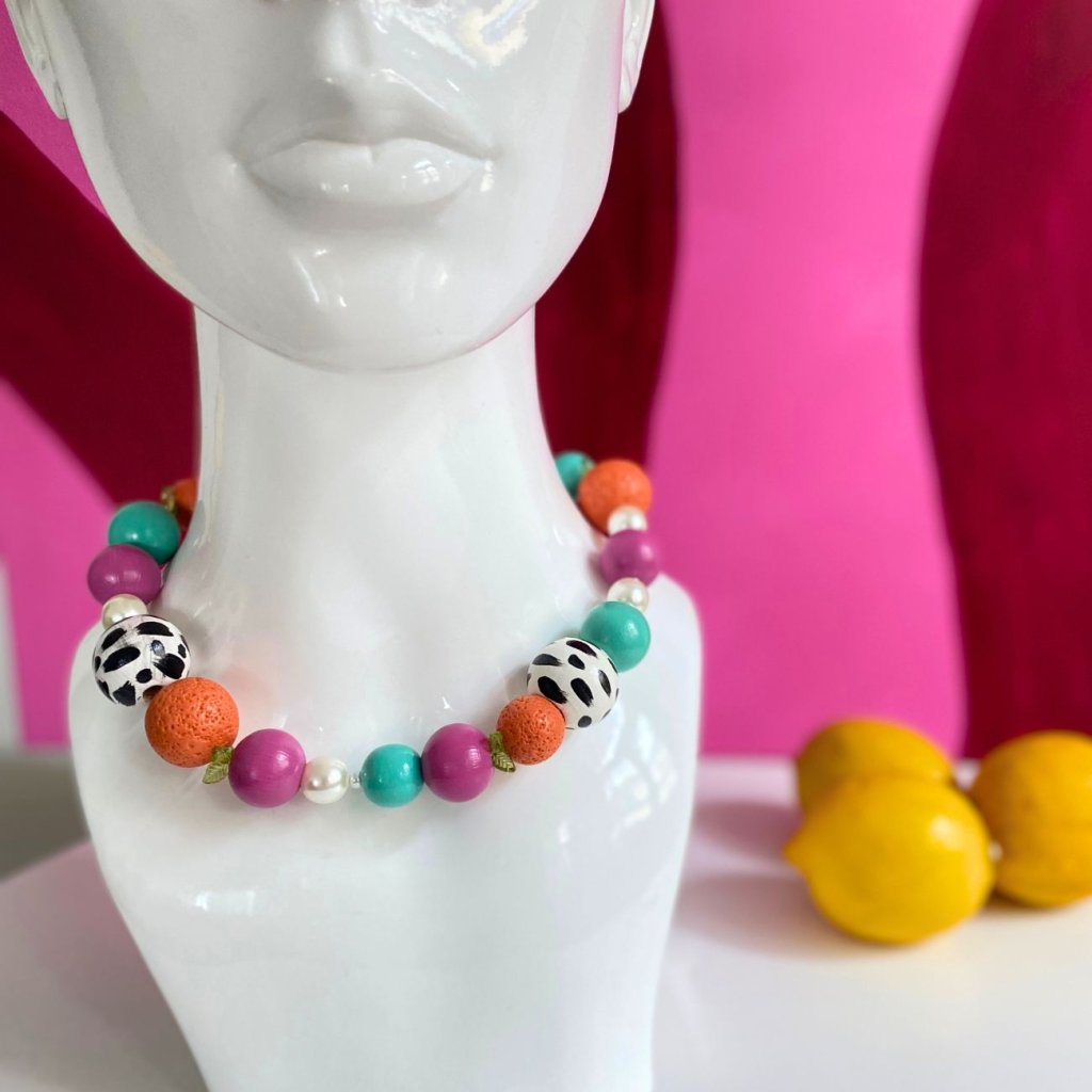 ✨ Ručně malované dřevěné korále, polymerové pomeranče, říční perly, voskované perly, akrylové lístečky a 2 nádherné přívěsky ✨