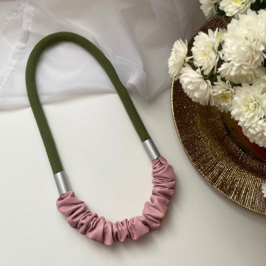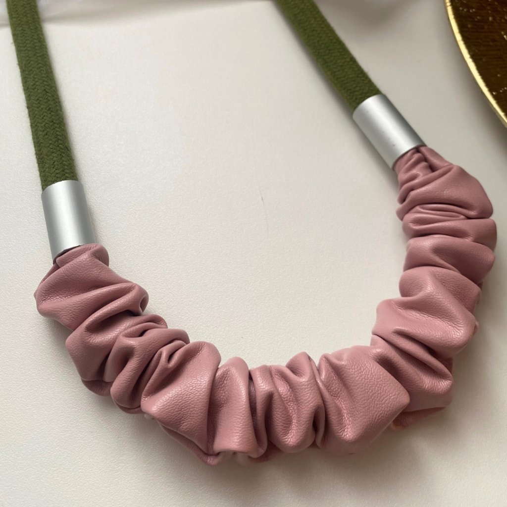 ✨ Novinka – scrunchie náhrdelník z koženky, bavlněného lana a komponentů z eloxovaného hliníku ✨
