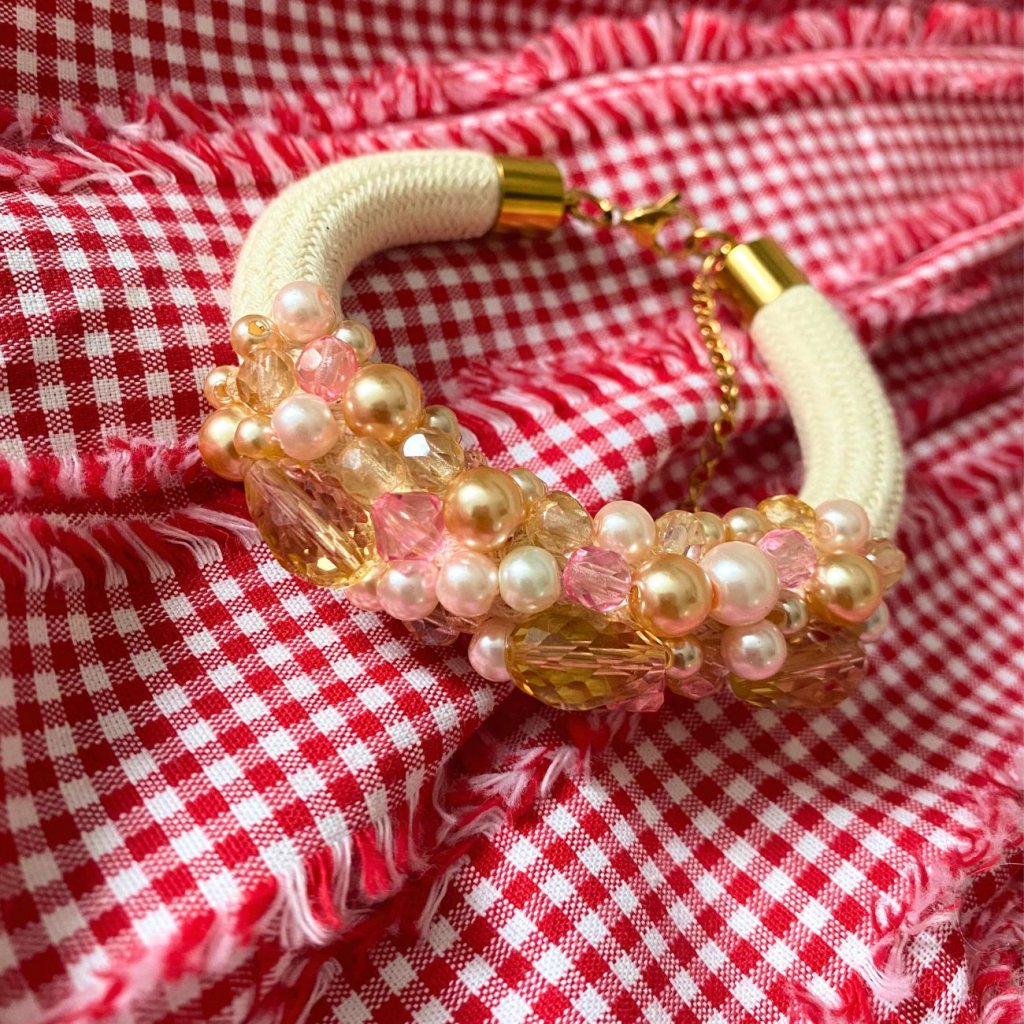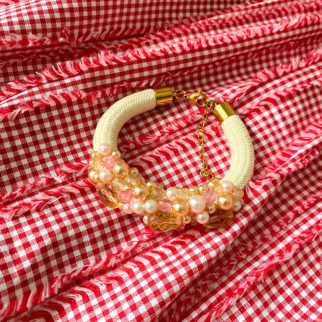 ✨ Bavlněné lano ručně pošité broušenými korálky a voskovými perlami ✨